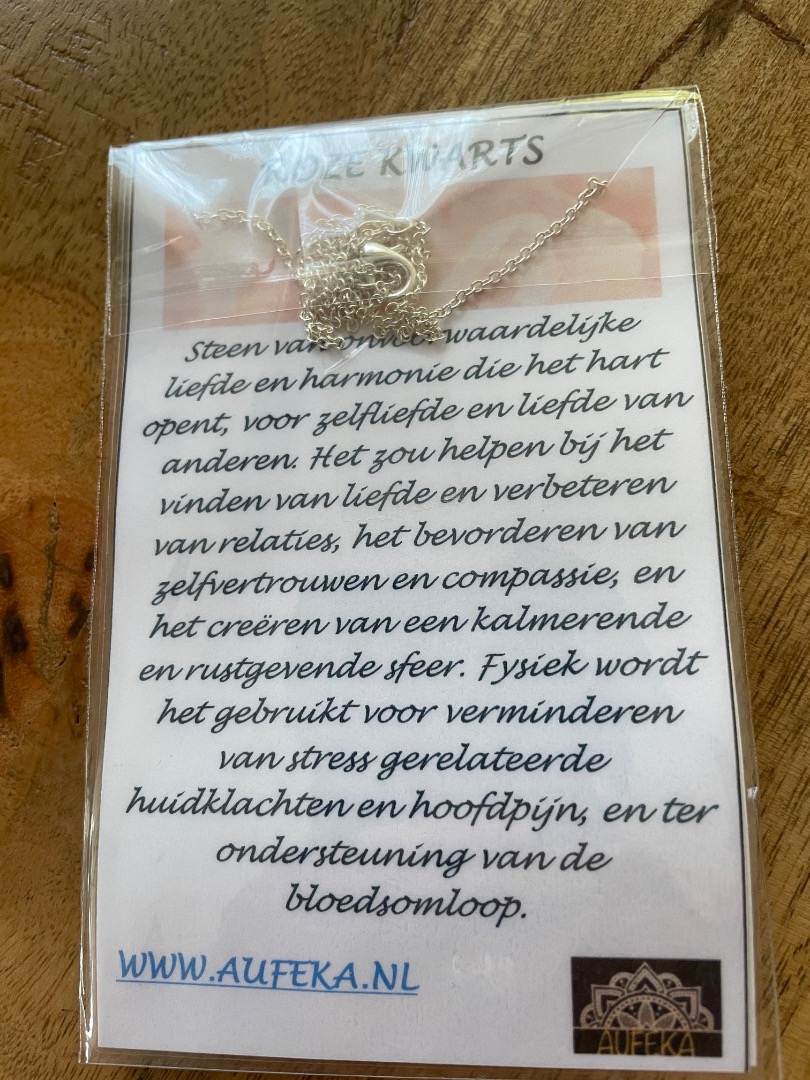 Een rozenkwartshanger in zilver is een prachtige keuze die vaak wordt geassocieerd met liefde, vrede en harmonie. Rozenkwarts staat bekend als de steen van onvoorwaardelijke liefde en zelfliefde. Het wordt gezegd dat het de hartchakra opent en bevordert, waardoor gevoelens van liefde, kalmte en vergeving worden versterkt.