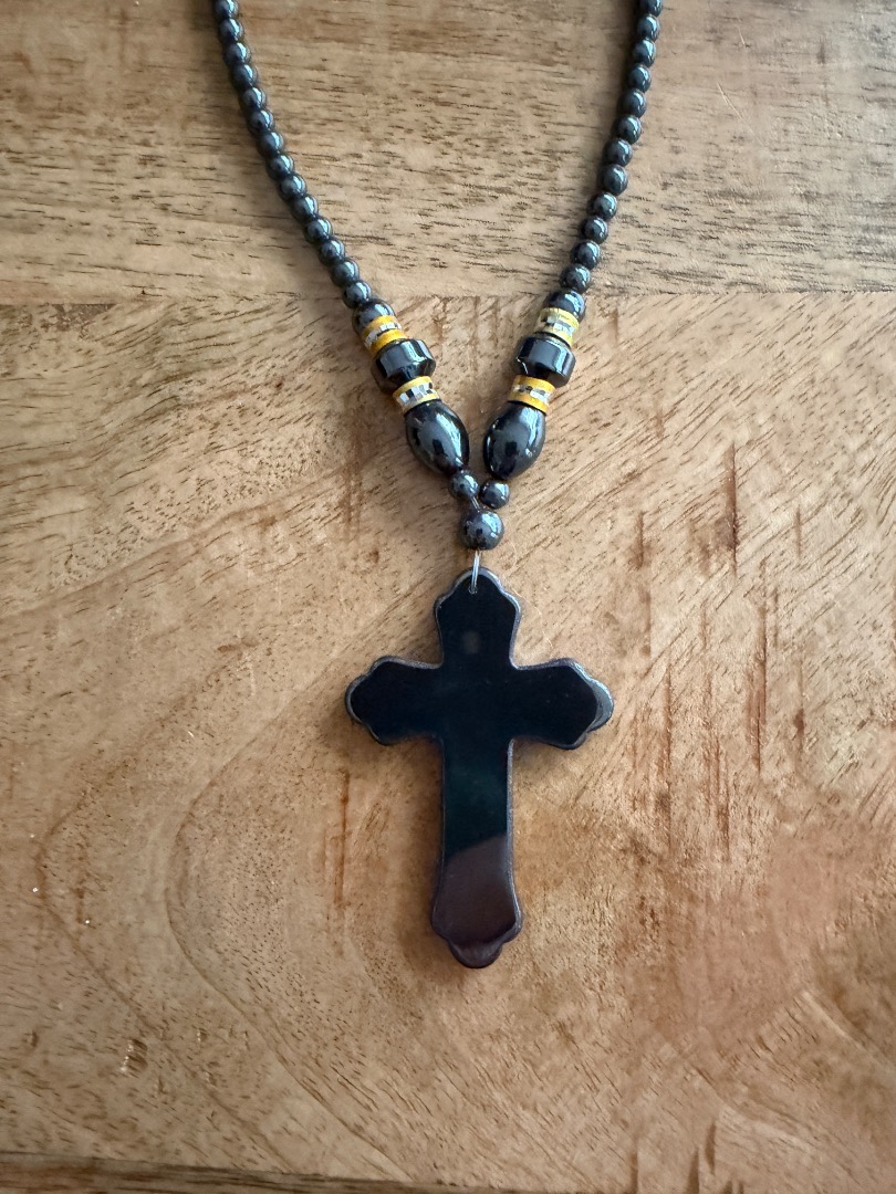 Een hematiet ketting met een kruis combineert de betekenis van de steen én het symbool. Samen krijgt het vaak een sterke, beschermende en aardende lading.
