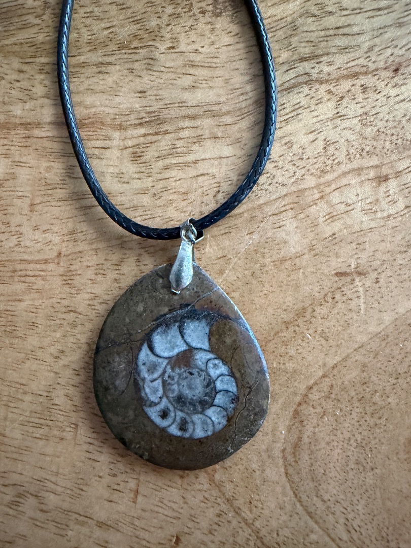Een fossiel hanger heeft een heel eigen, diepe symboliek — meer verbonden met tijd en aarde dan met energie alleen.